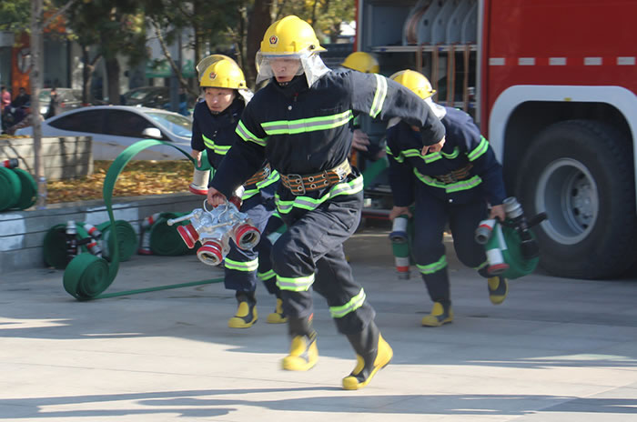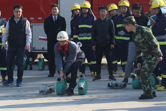 比武場上,昌達(dá)消防隊(duì)全體隊(duì)員不甘示弱,比技能、比耐力、比勇氣、比精神。