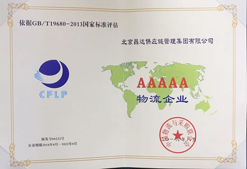 日前,從中國物流與采購聯(lián)合會傳來消息,昌達集團全國5A級物流企業(yè)榮譽評審再次通過,2019年10月26日,集團收到榮譽牌匾及證書。