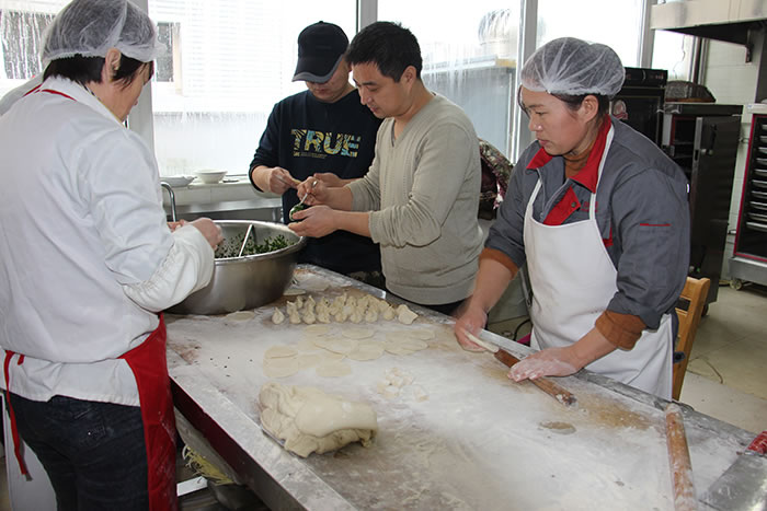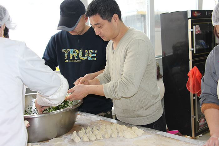 雖然天氣寒冷,但昌達集團的餐廳里卻是一片熱火朝天的景象,大家興致勃勃,各自拿出看家本領(lǐng),發(fā)揮特長,分工協(xié)作,有的切菜、有的調(diào)陷,忙的不亦樂乎,包出來的餃子也是形態(tài)各異,有的形象逼真栩栩如生,有的皮薄餡大令人饞涎欲滴。