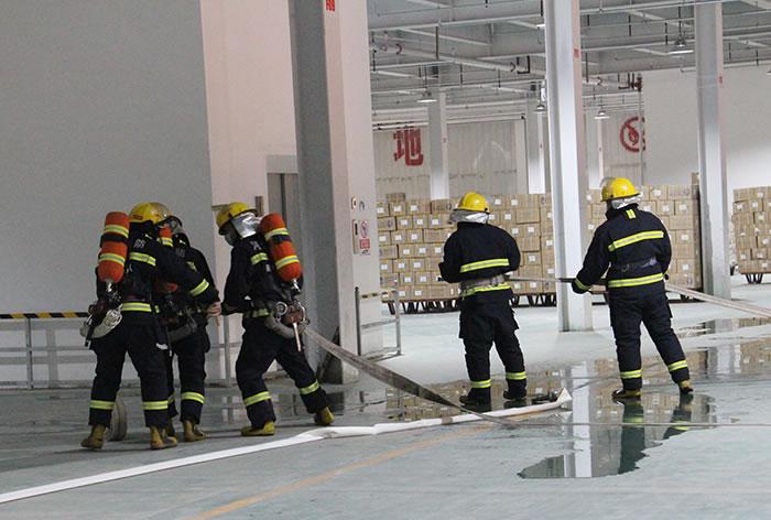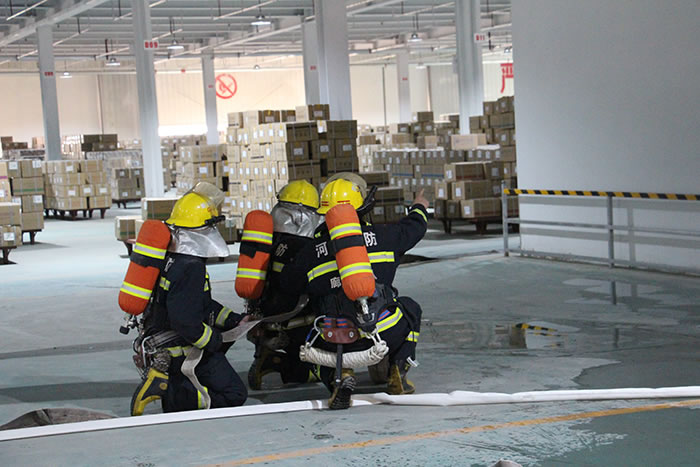 本次演練假設:3月24日下午,昌達集團一倉庫由于電線短路起火,引燃倉庫圖書發(fā)生火災,庫房各崗位員工立即停止工作,捂住口鼻,彎腰前進,逃離“火場”,1人被困,昌達消防隊立刻集結,全副武裝到場處置,連接兩支水槍進行有效地撲救工作。與此同時,目擊者第一時間撥打119報警,固安縣新昌西街消防救援站接警后,立即派出5部消防車、20名指戰(zhàn)員,同時調度周邊的小型消防站到場施救。十分鐘后,消防救援力量趕到公司,迅速展開滅火戰(zhàn)斗,“火情”很快得到有效控制,“被困人員”被成功解救。
