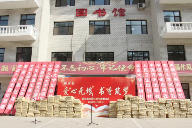 書籍是人類文明和進步的階梯,讀書是文化自信的基石。4月23日,在第26個世界讀書日來臨之際,昌達集團攜手13家出版社在固安縣圖書館舉行隆重的“愛心無垠,書香筑夢”愛心圖書捐贈儀式,共捐贈圖書56萬碼洋。