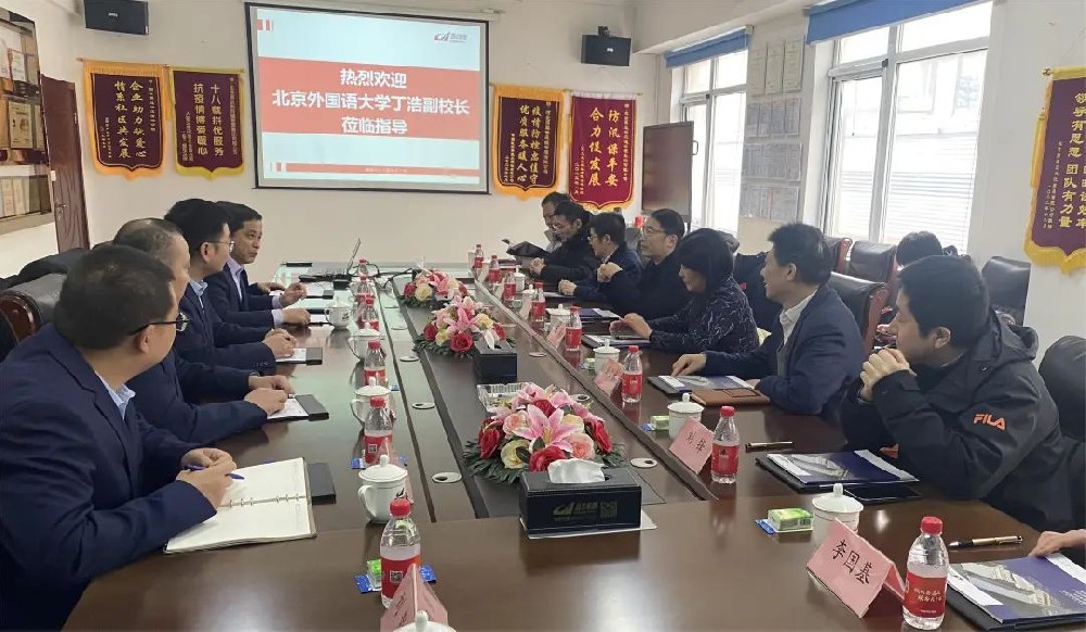熱烈歡迎北京外國(guó)語(yǔ)大學(xué)丁浩副校長(zhǎng)、外研社王芳社長(zhǎng)一行蒞臨我司檢查指導(dǎo)!